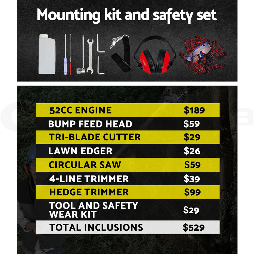 Giantz 52CC 4 Stroke Pole Chainsaw Petrol Hedge Trimmer Tree Pruner 7 In 1