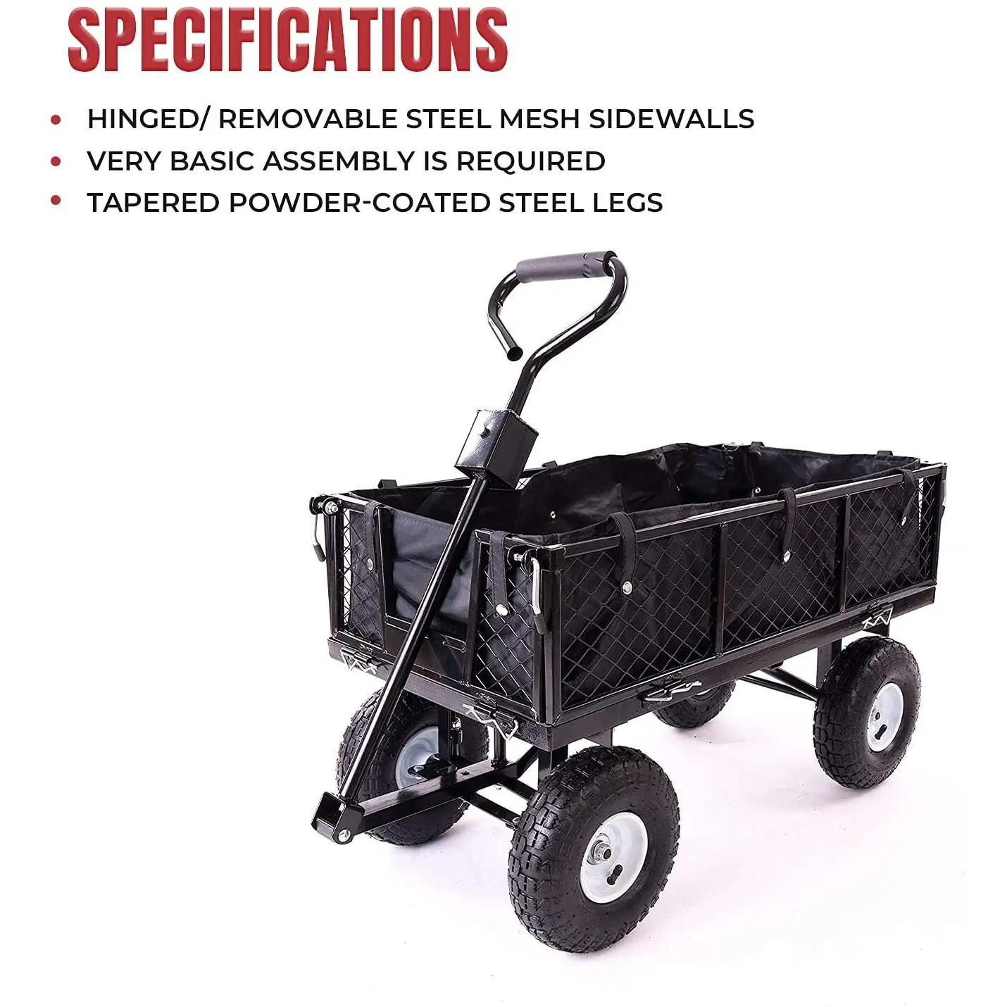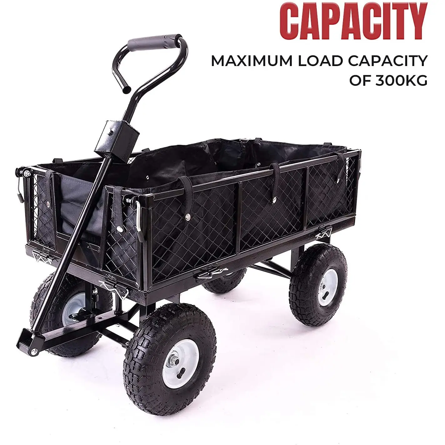 Garden Dump Rolling Mesh Cart with Heavy Duty Steel Frame,10 Inch Pneumatic Tires Maximum Load Capacity of 300 Kg (Black)
