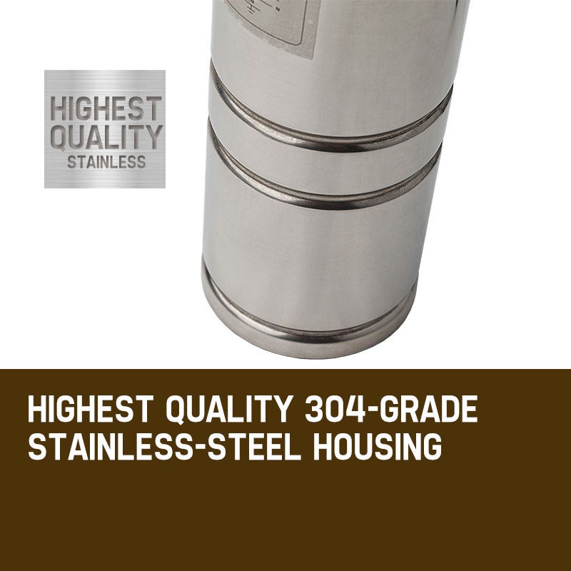 - Highest quality 304-grade stainless-steel housing