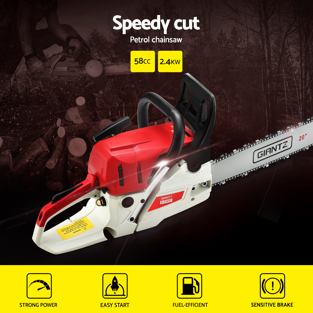 Giantz 58cc Petrol Chainsaw 20 Inch Bar Chain Saw Tree Pruner 2 Stroke E-Start