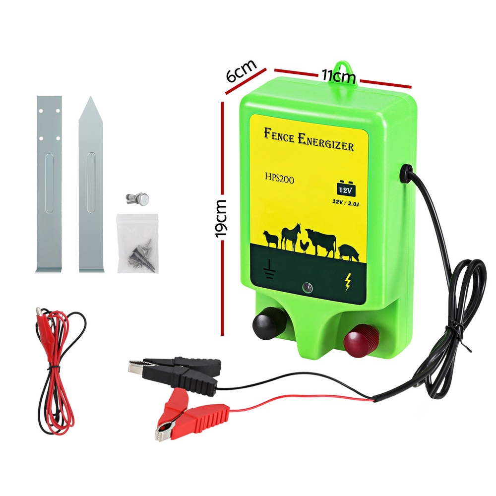 Keep your livestock safe and pests away from your home with the Giantz battery-powered Electric Fence Energiser. The energiser is designed to keep your electric fence continuously charged for up to 18kms, so you'll always have protection. When an animal comes into contact with the fence, it will emit a brief pulse - enough to keep your animals away but prevent harmful electric shocks. Your purchase comes with a battery wire with crocodile clips and all the fixings you need. With its simple and easy-to-install design, you can have the energiser up and running within minutes. Don't sit on the fence - get your Giantz battery-powered Electric Fence Energiser today.