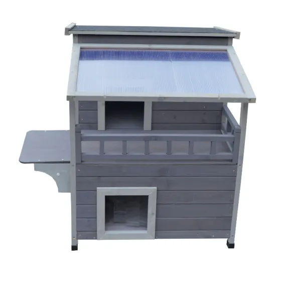 2 Story Outdoor Cat Shelter Condo with Escape Door Rainproof Kitty House
