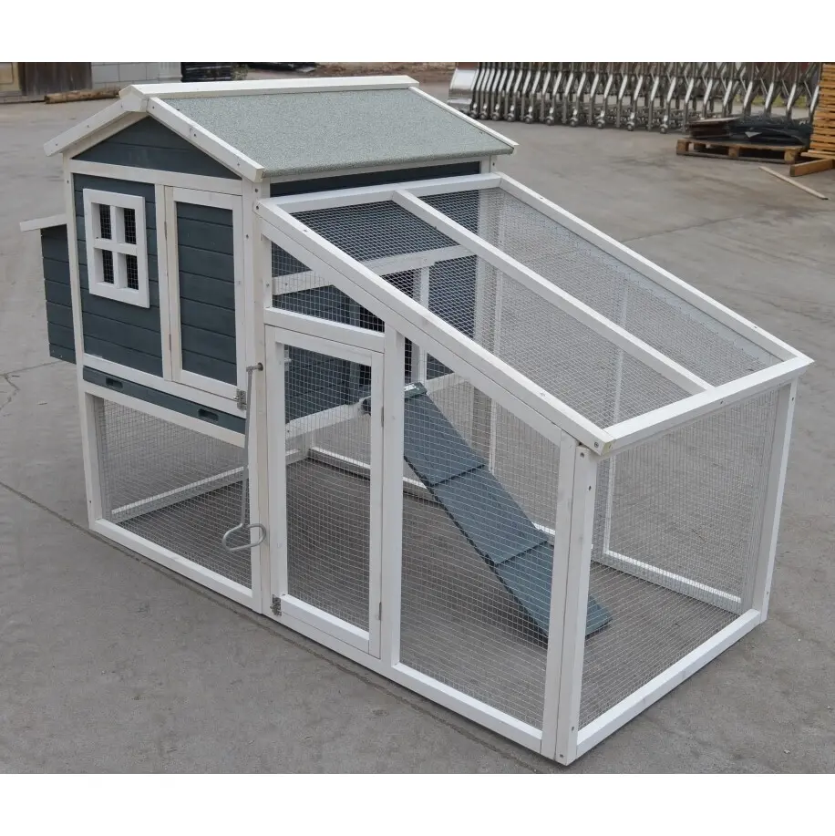 - Integrated nesting box and the roof of the nesting box can be opened for collecting eggs