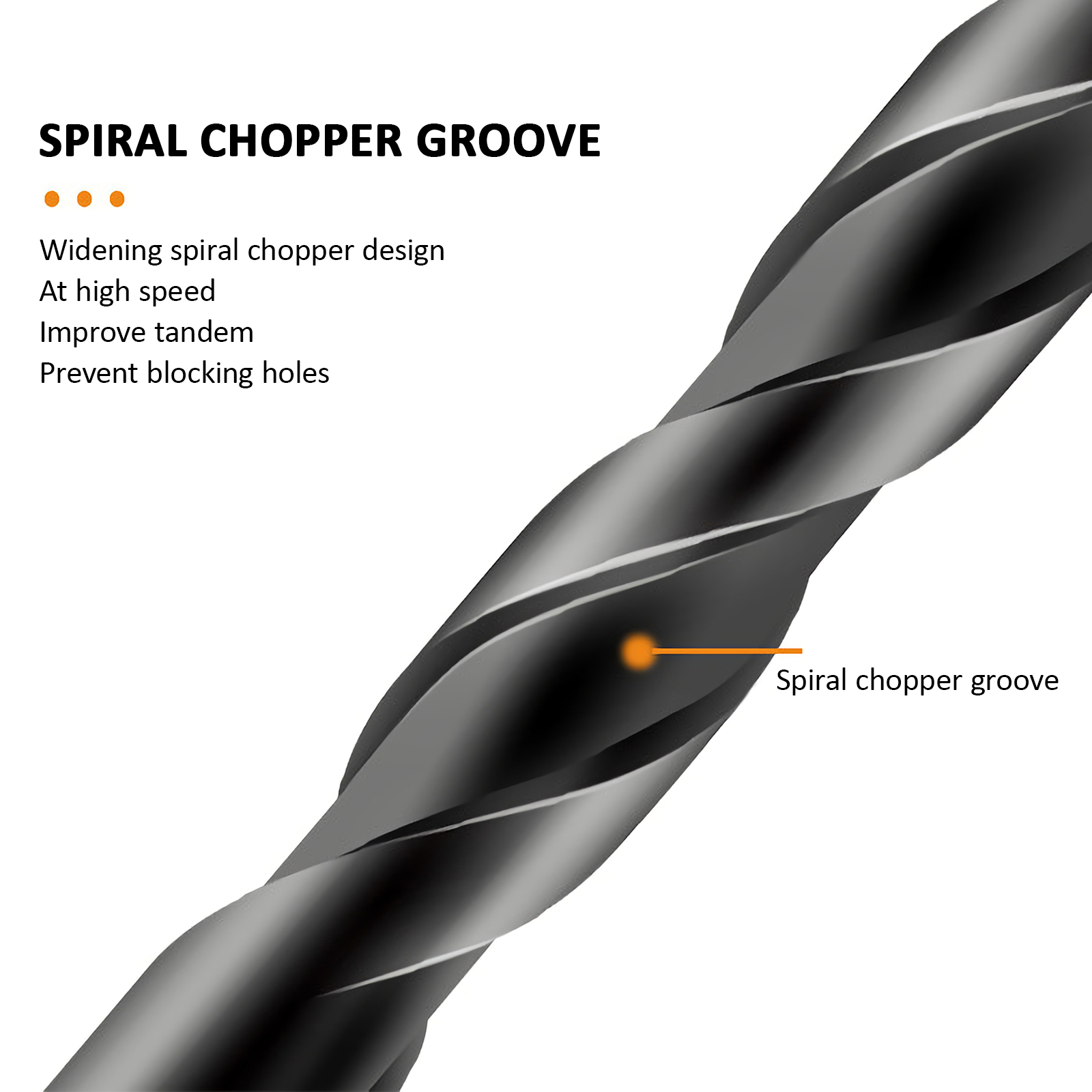 The tip is 4-blade design, sharp blade can make the work more efficient and fine. U shape spiral chip flute design, drill more smoothly