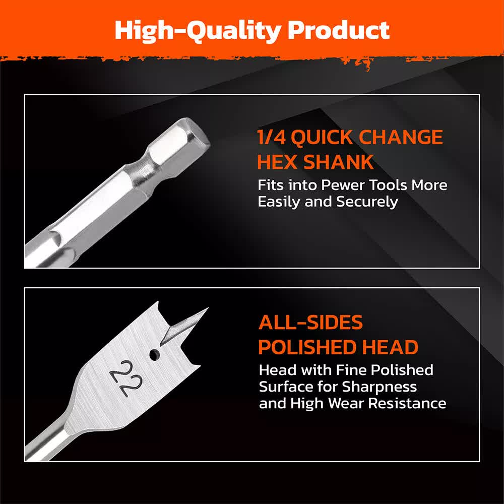Flat Paddle Feature: These bits have flattened blades with a sharp point that helps position and steady these bits. Hex shank helps reduce slipping and prevent falling off when drilling