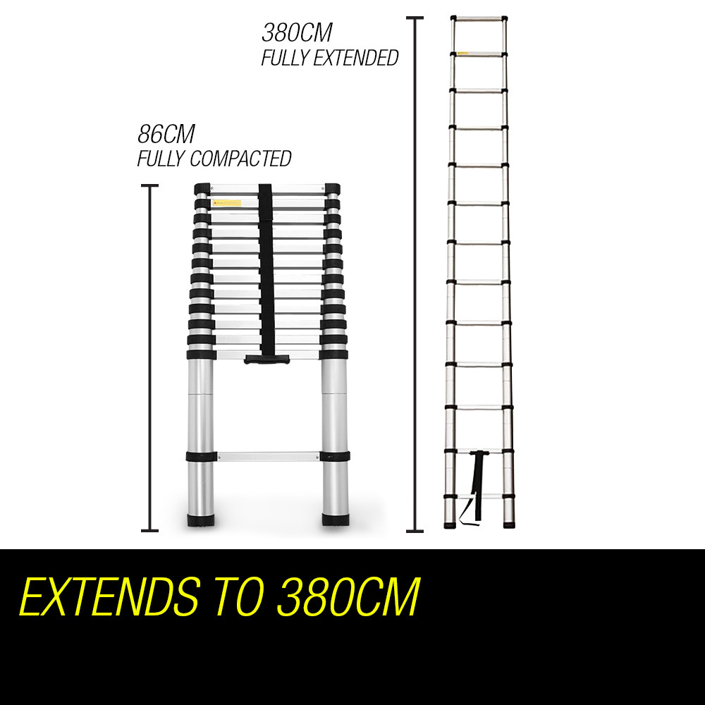 Bullet 3.8m Telescopic Aluminium Ladder Alloy Extension Extendable Steps Multi Portable
