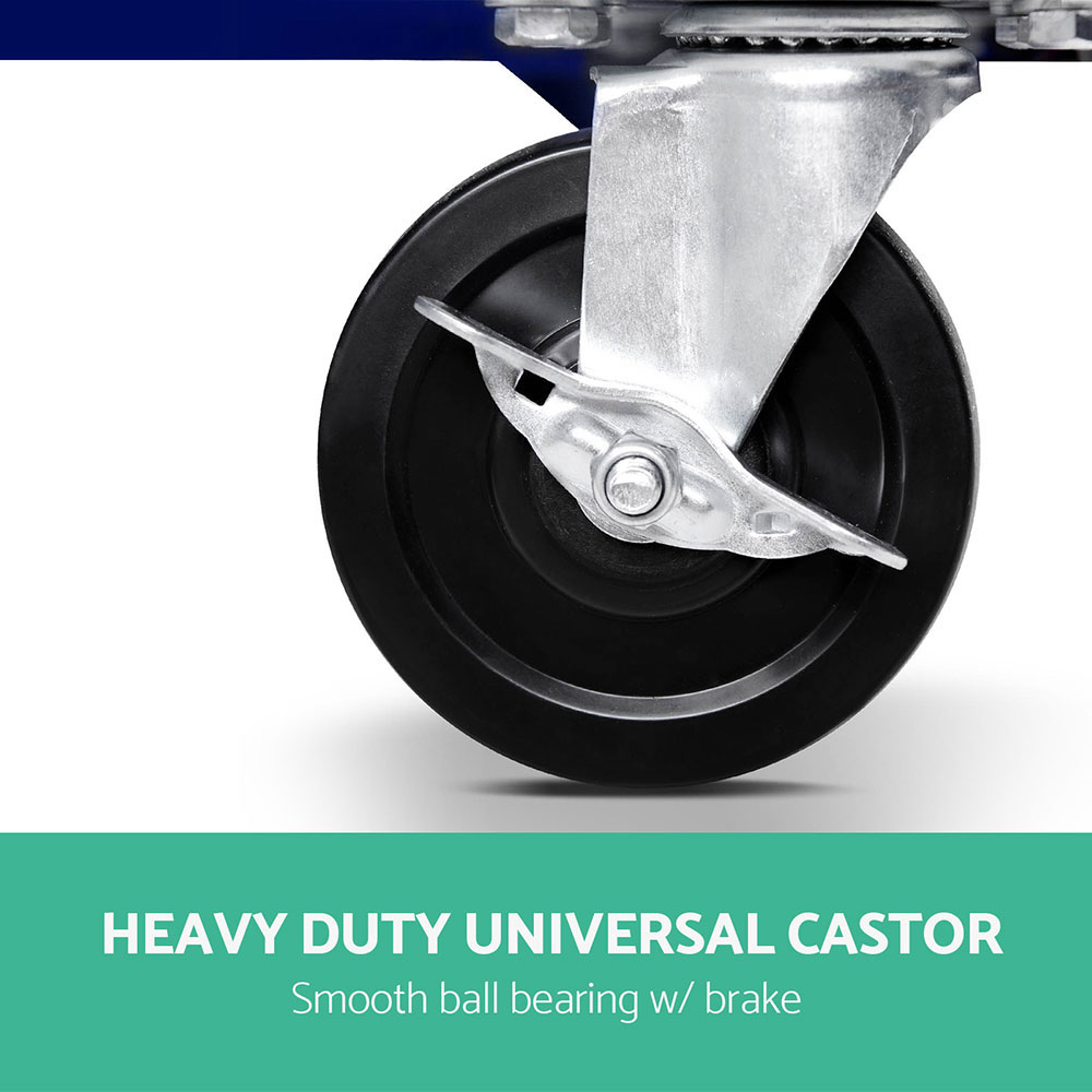 This robust, multi-drawer Giantz Tool Trolley is an essential for any workshop. Crafted from durable steel, it features smooth ball-bearing slides for easy access and a secure lock system for safety. Its spacious design includes varying drawer sizes to accommodate tools of all shapes, complete with non-slip liners. The chest is also mounted on omni-directional castors with locakble front wheels, ensuring a smooth maneuverability and stable positioning. Sleek and functional, it's perfect for organizing and protecting your valuable tools.
