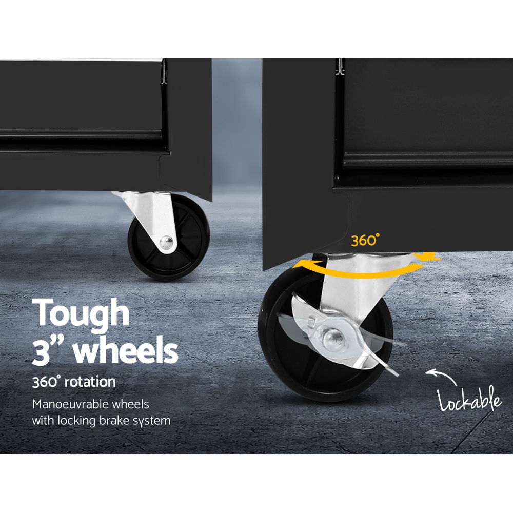Giantz 16 Drawer Tool Box Cabinet Chest Trolley Toolbox Garage Storage Black