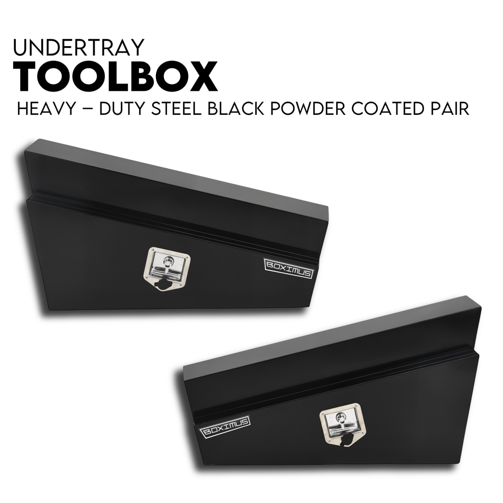 Under Tray Tool Box Underbody Pair Set 900mm Black Steel