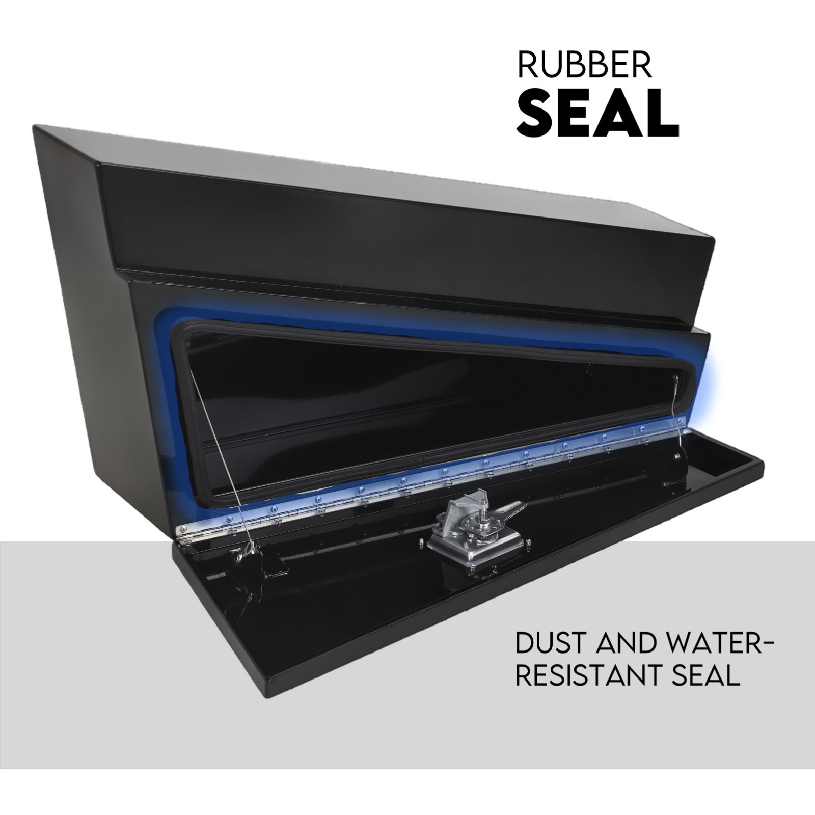 When you’re on the job, you need gear that’s built to handle the rough stuff. The Boximus 900mm Black Steel Under Tray Tool Box delivers just that — rock-solid storage that keeps your gear dry, secure, and right where you need it. Built from heavy-duty steel and finished with a tough black powder coat, it’s made to resist rust, water, and dust — no matter how hard the worksite hits. Dual support cables keep the lid steady, while the rubber seal locks out the elements. This 900mm pair set fits neatly under most ute trays, saving space without cutting corners on protection or strength.